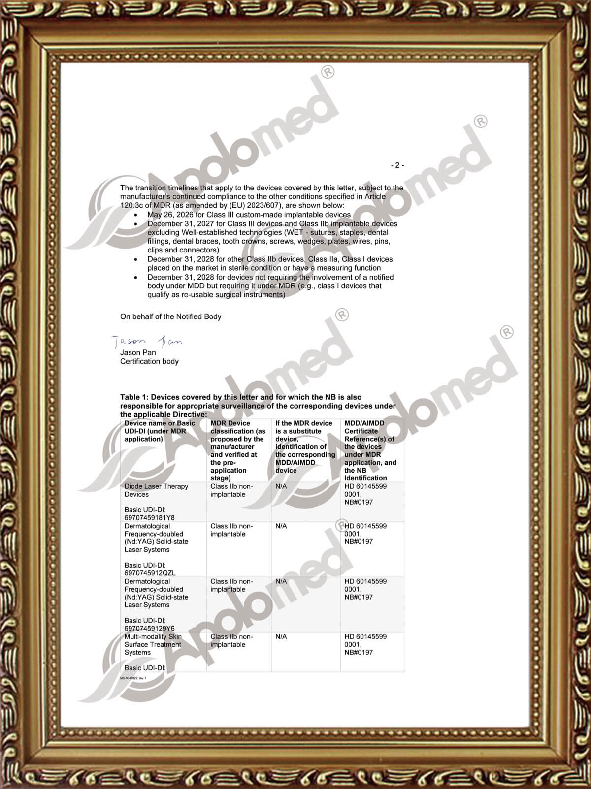 1- Sistema per scultura corporea con laser a diodi 2- Sistema laser a picosecondi Nd: Yag 3- Dispositivo per terapia laser a diodi