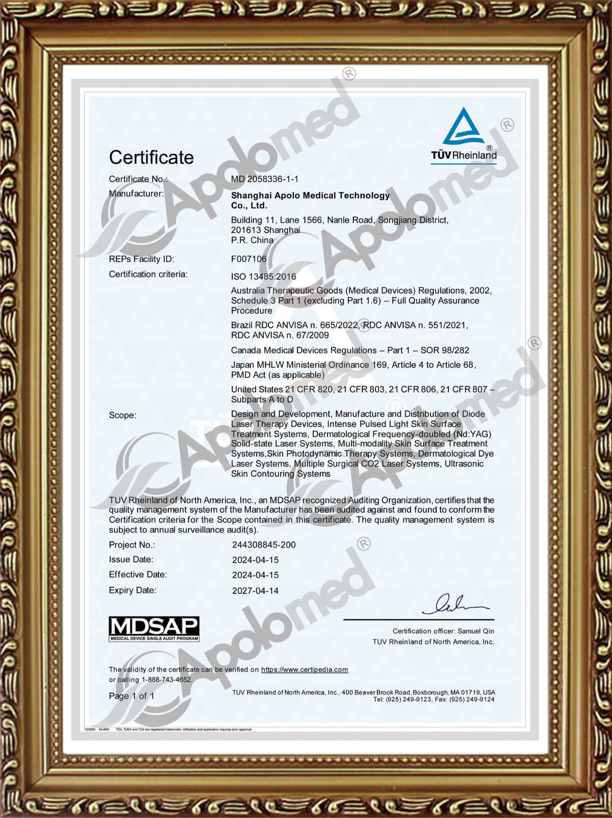 Shanghai Apolo Medical Technology Co., Ltd è un'azienda leader nella progettazione e produzione di luce pulsata intensa (IPL), varie tecnologie laser (Pico Nd:YAG, CO2......), piattaforma laser, HIFU, PDT LED, tecnologie di dimagrimento corporeo per l'utilizzo nei settori medico ed estetico.